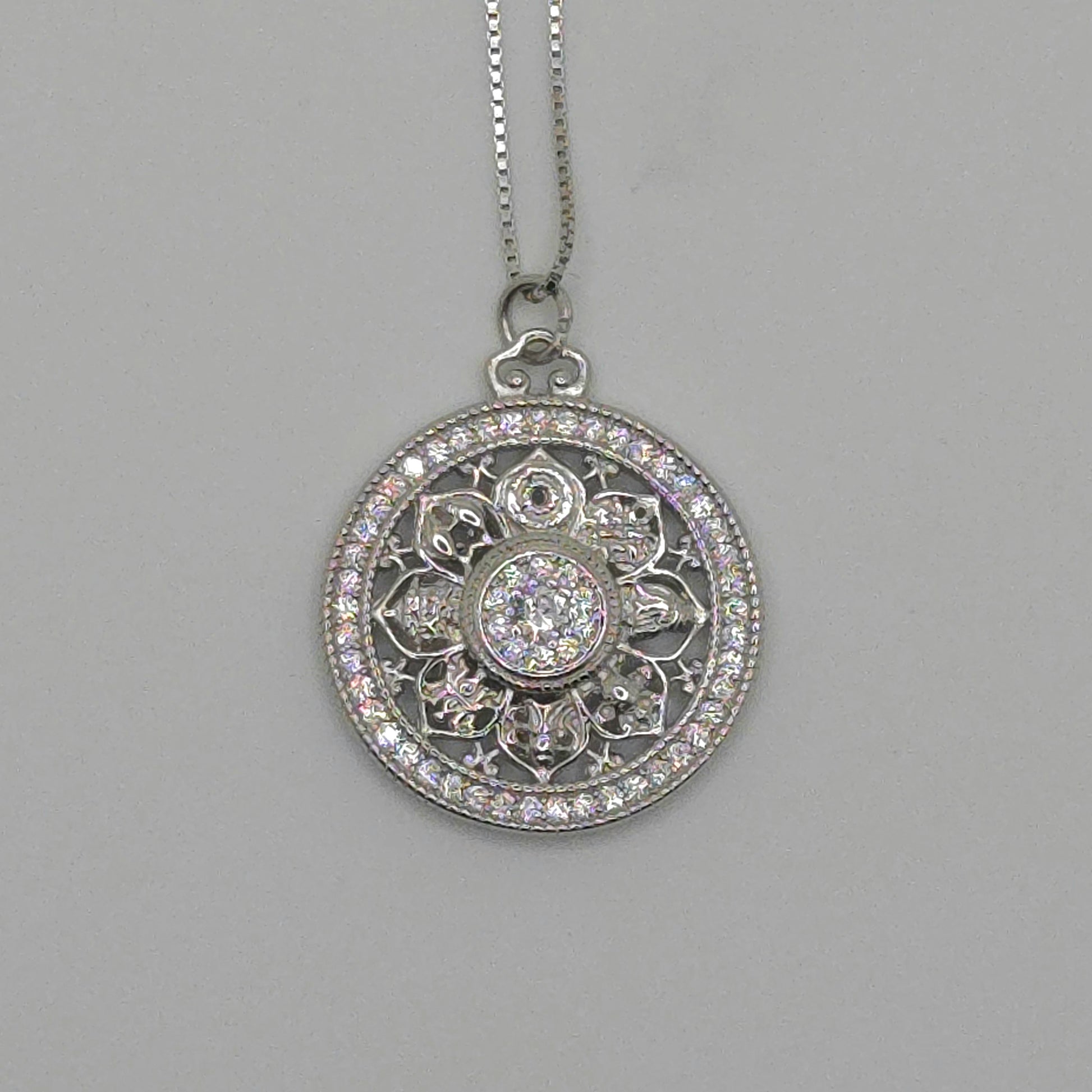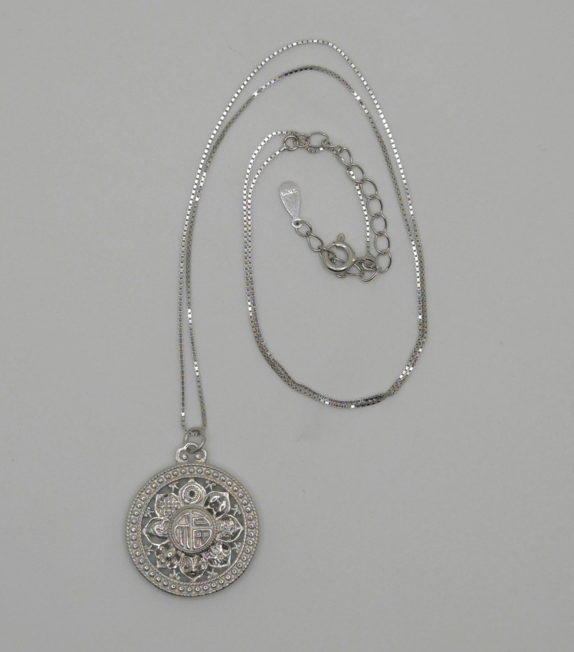 92.5% sterling silver necklace with 92.5% sterling silver and zirconia eight treasure compass pendant.