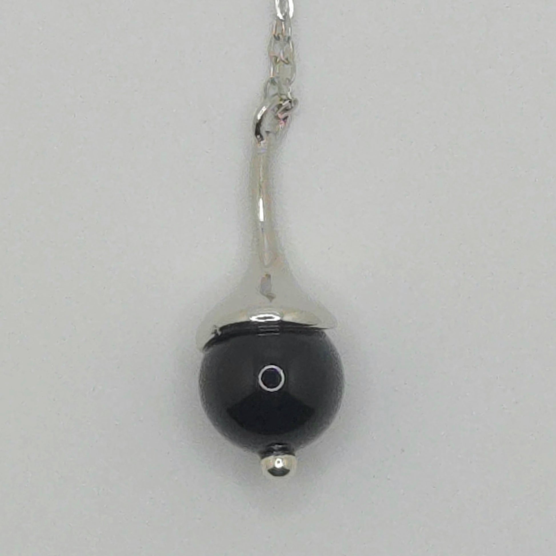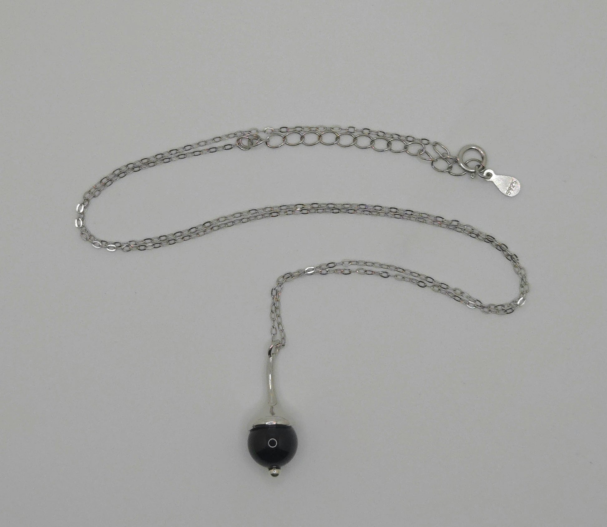 92.5% sterling silver clavicle necklace with black agate stone bulb and 92.5% sterling silver pendant.