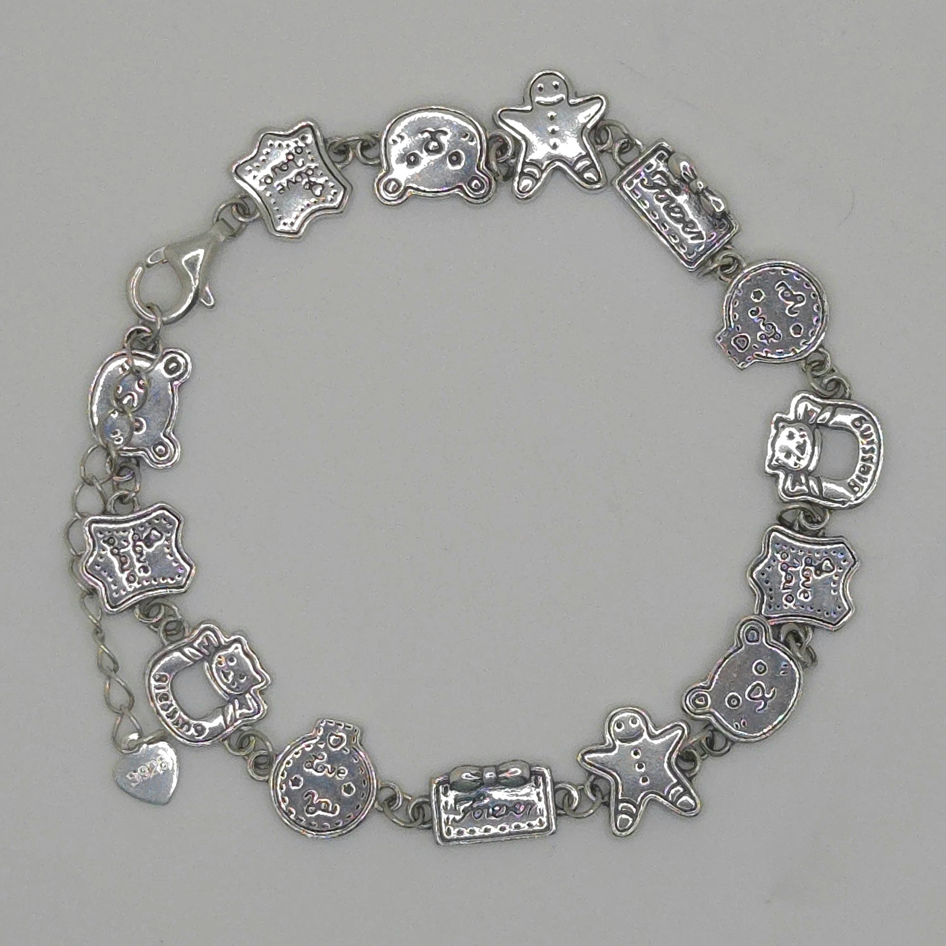 92.5% sterling silver niche designed Cartoon Bear and Gingerbread Man charmed bracelet.