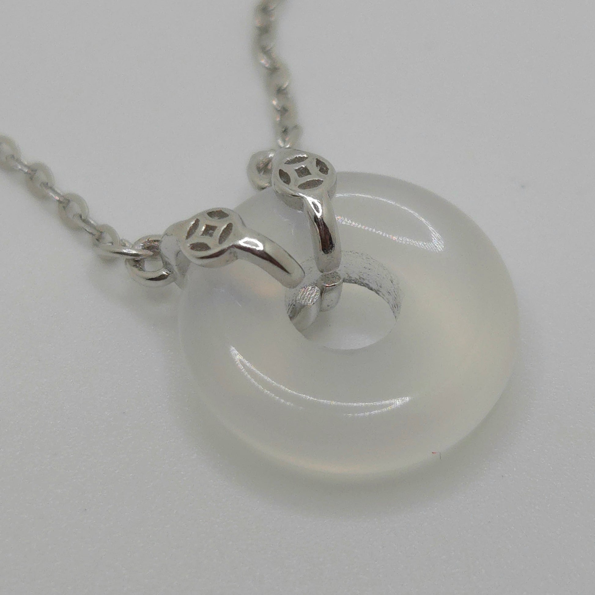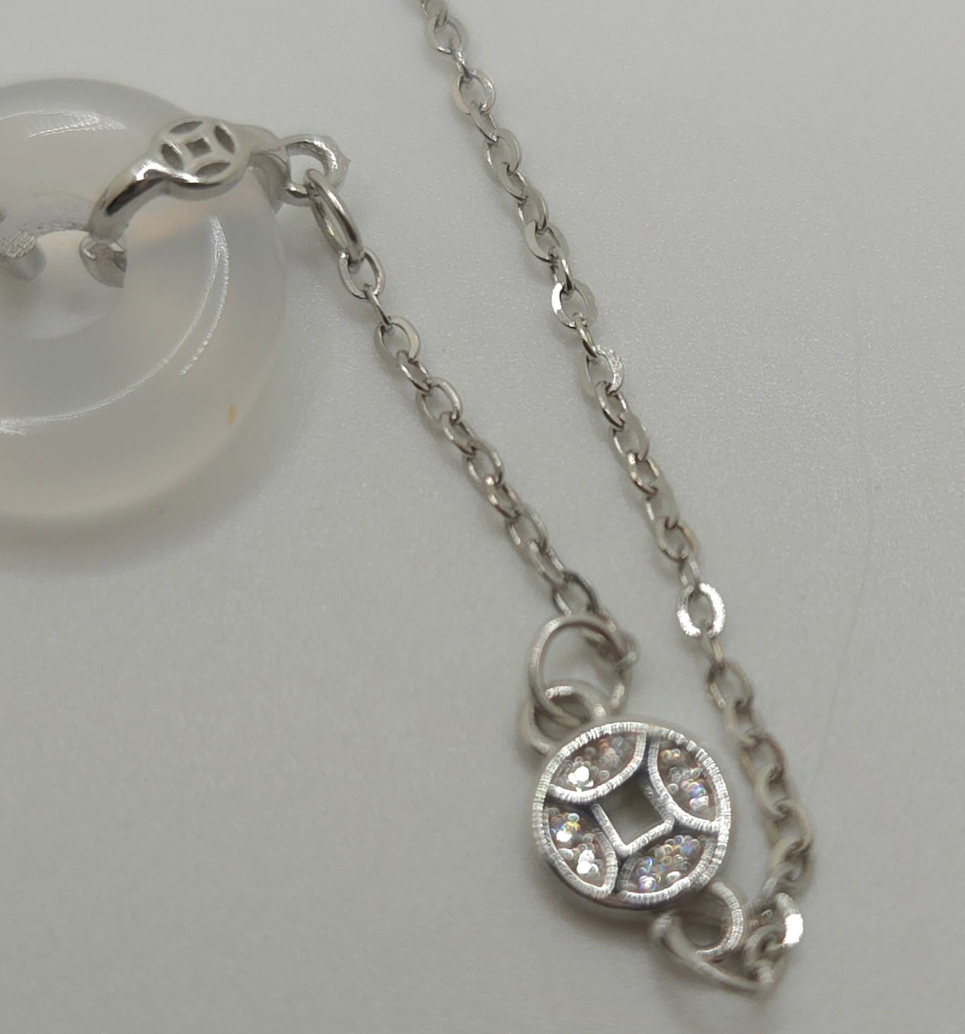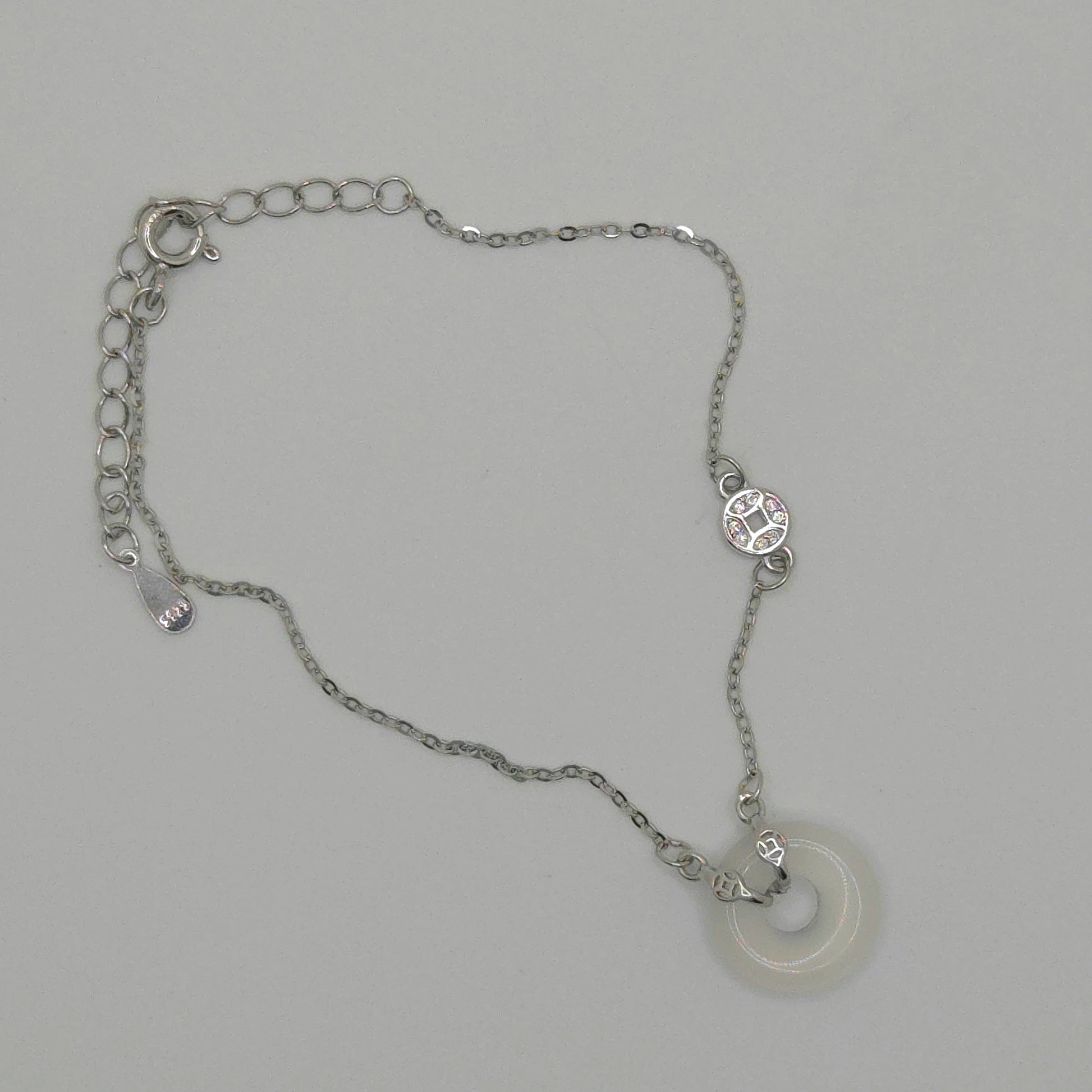 92.5% sterling silver bracelet with white chalcedony stone ring buckle and 92.5% sterling silver and zirconia coin.