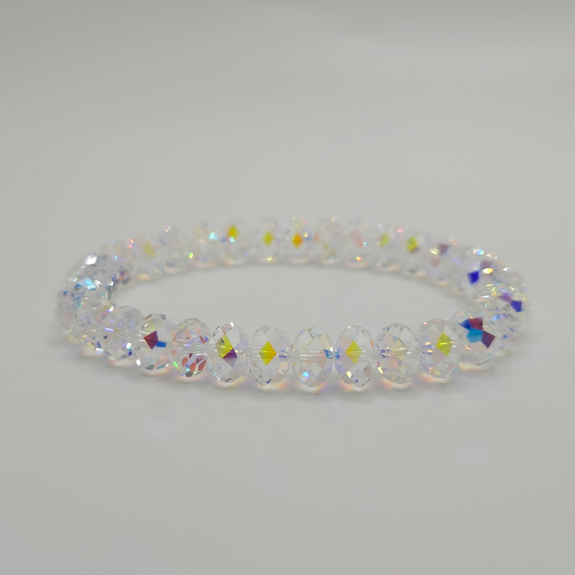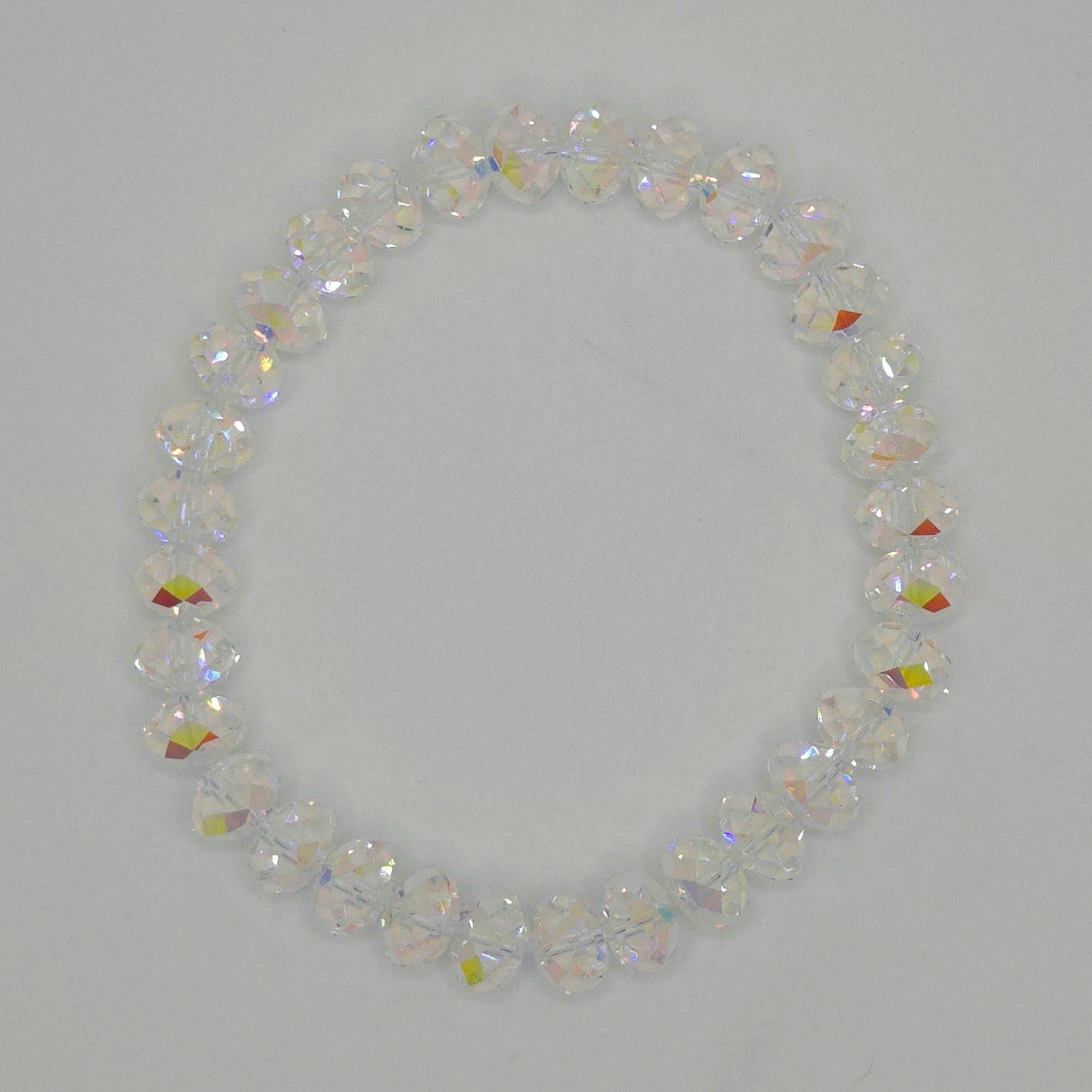 Dazzling white gemcut crystal bracelet with strong elastic band.