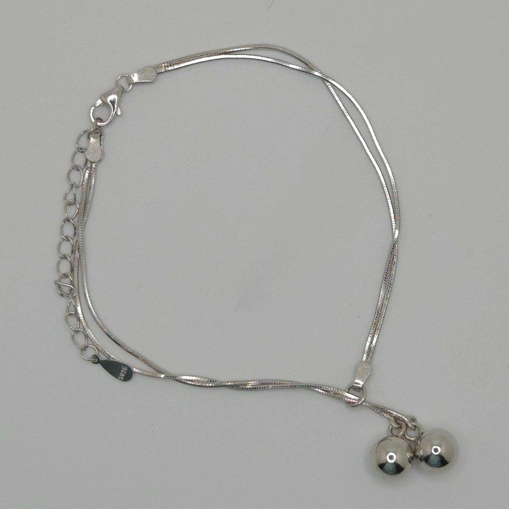 92.5% sterling silver double snake bone chain bracelet with two (2) 92.5% sterling silver ball accents.