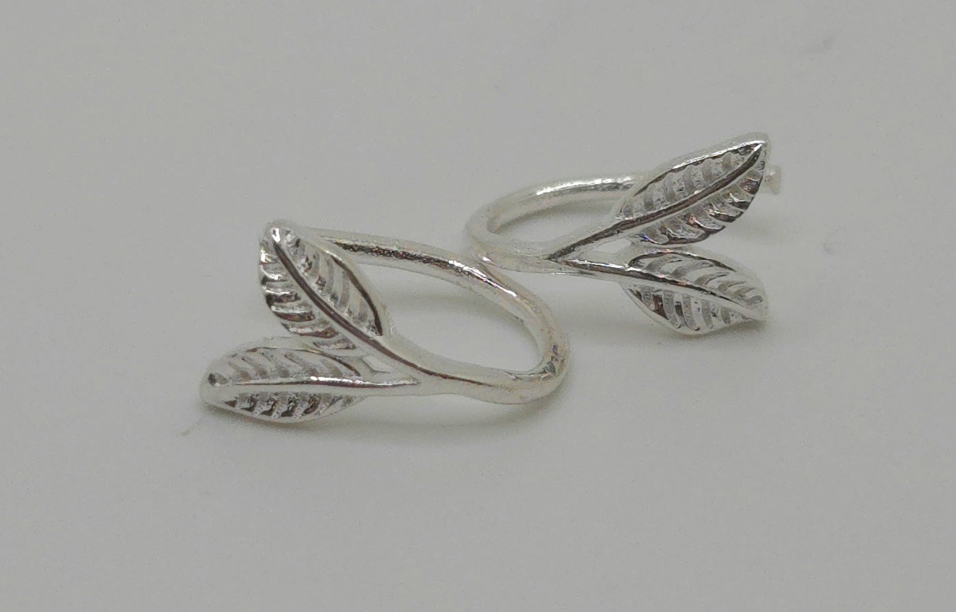 99.9% pure sterling silver lightweight forest leaf hook earrings.