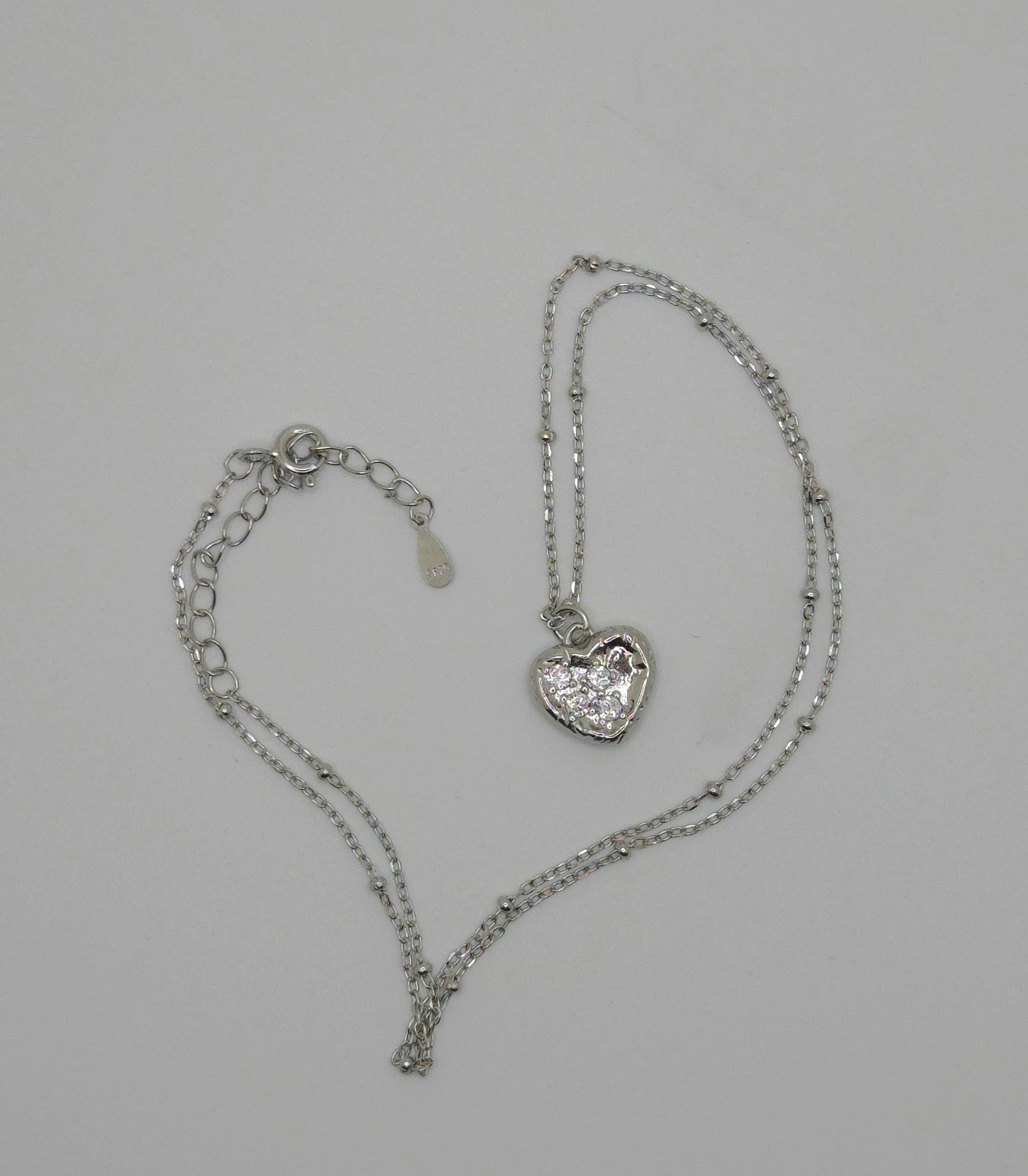 92.5% sterling silver clavicle necklace with 92.5% sterling silver and zirconia heart pendant.