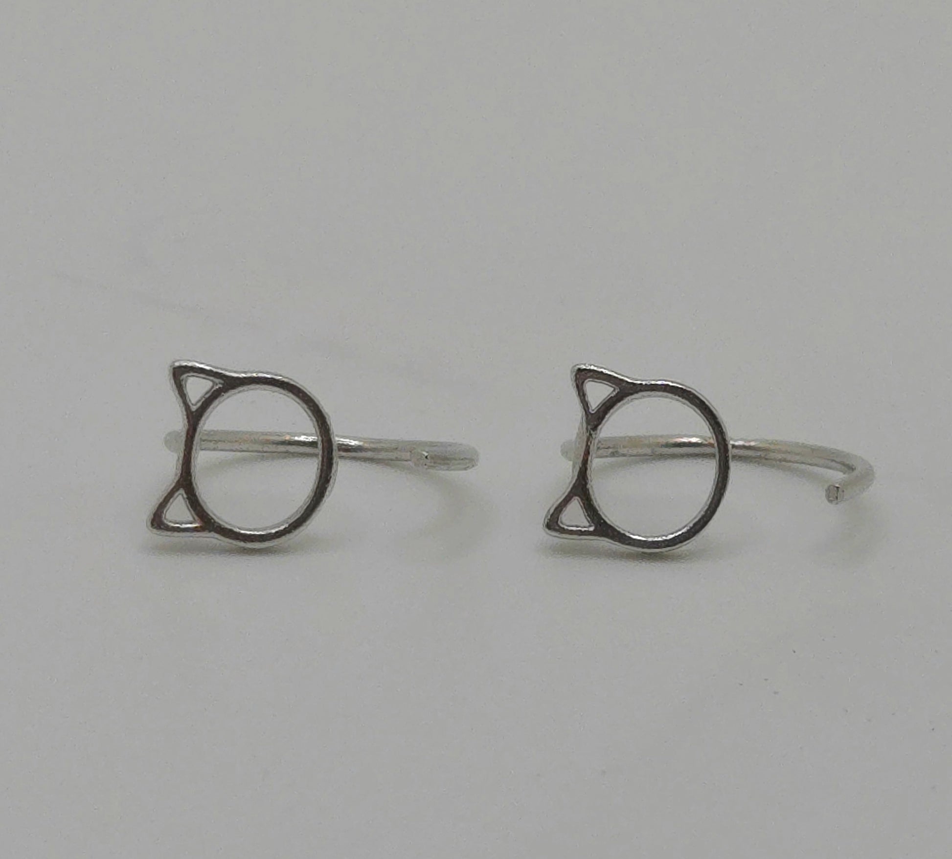 99.9% pure sterling silver lightweight cat head hook earrings.