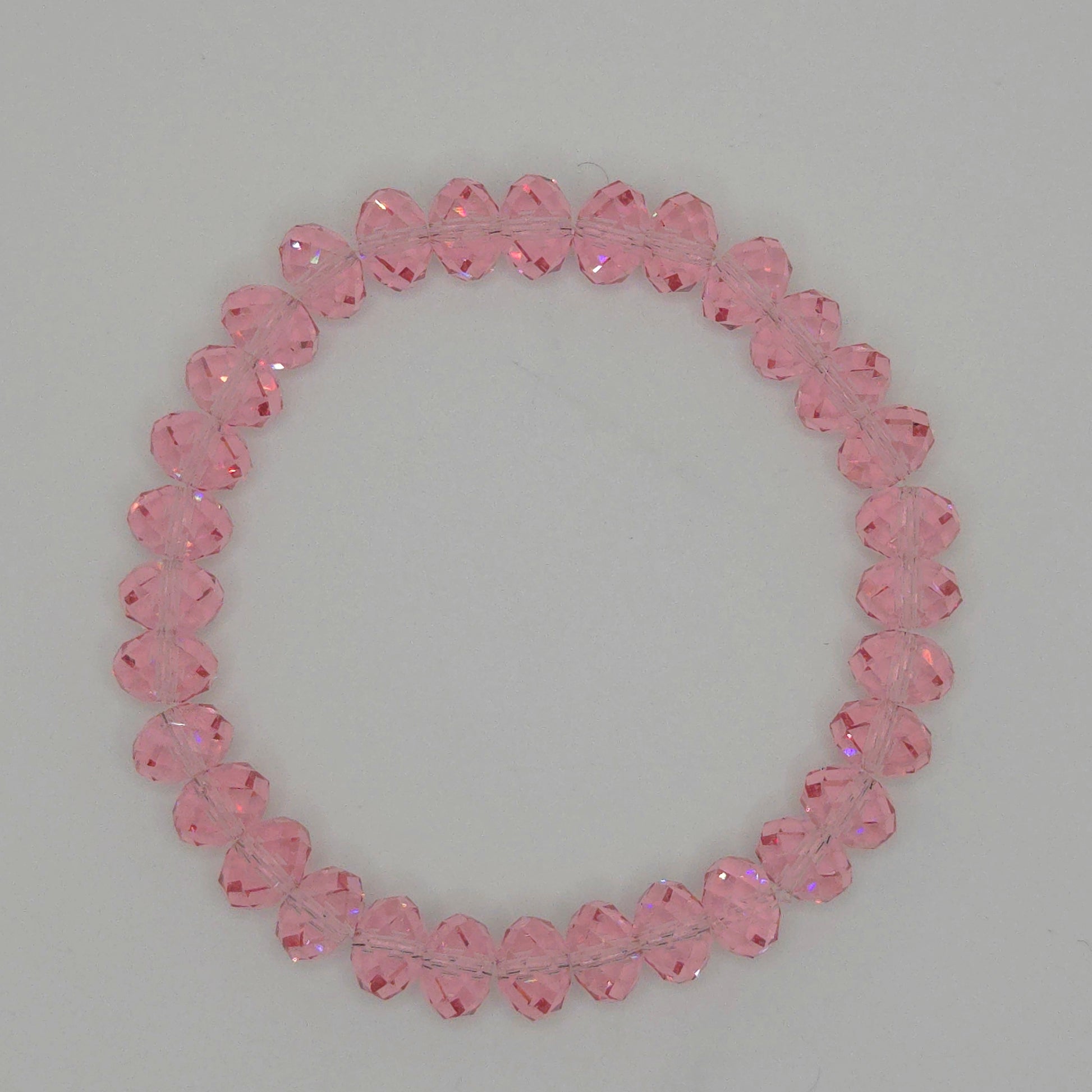 Dazzling blush pink gemcut crystal bracelet with strong elastic band.