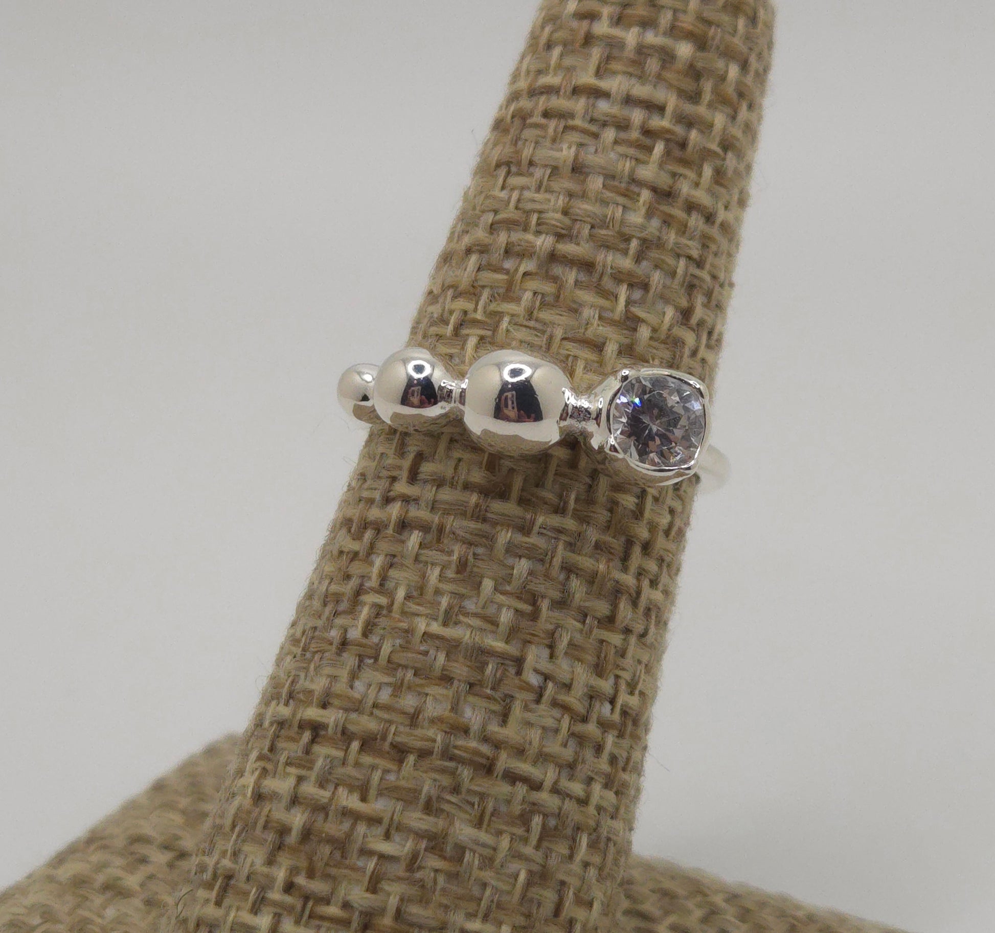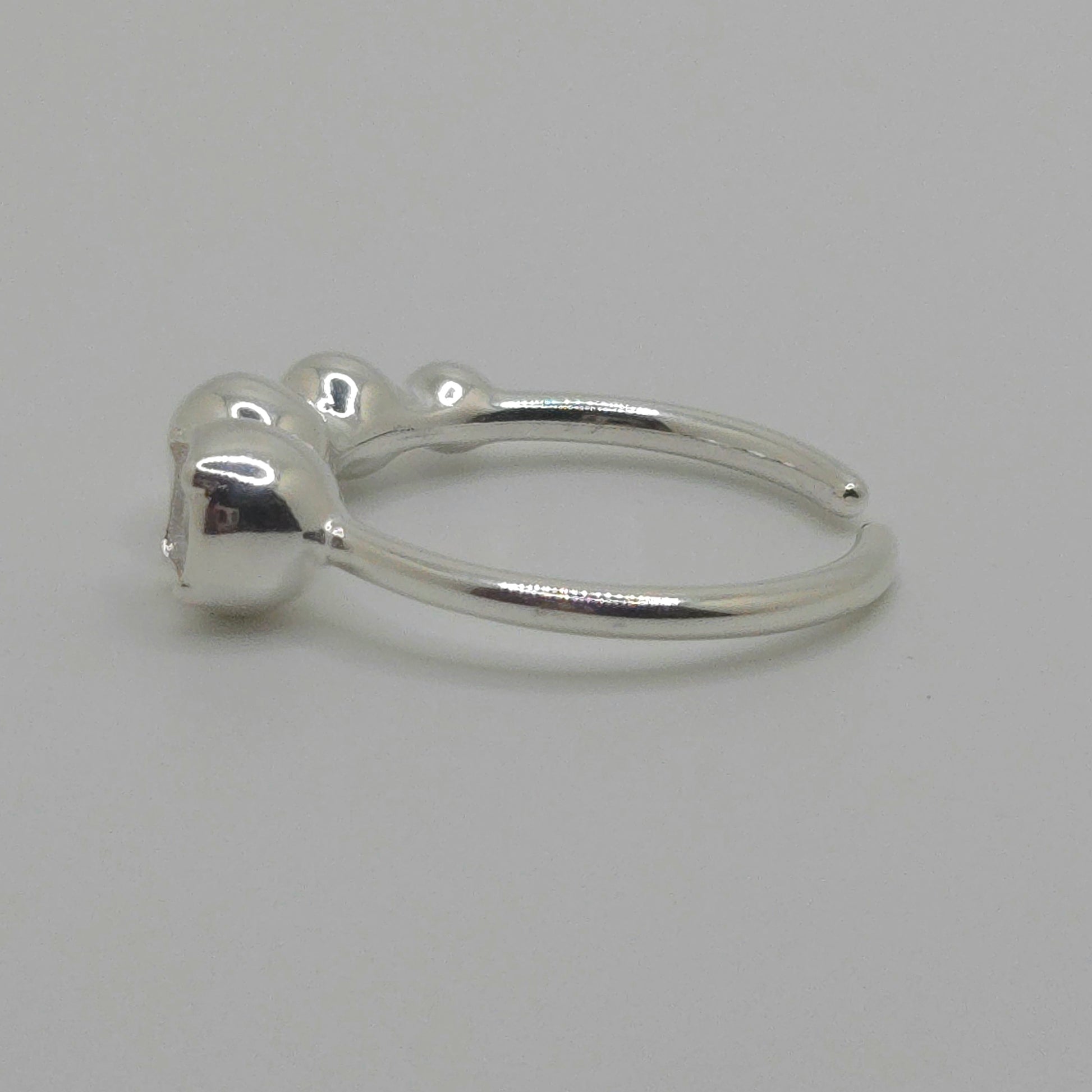 Adjustable 92.5% sterling silver four bead zirconia ring.