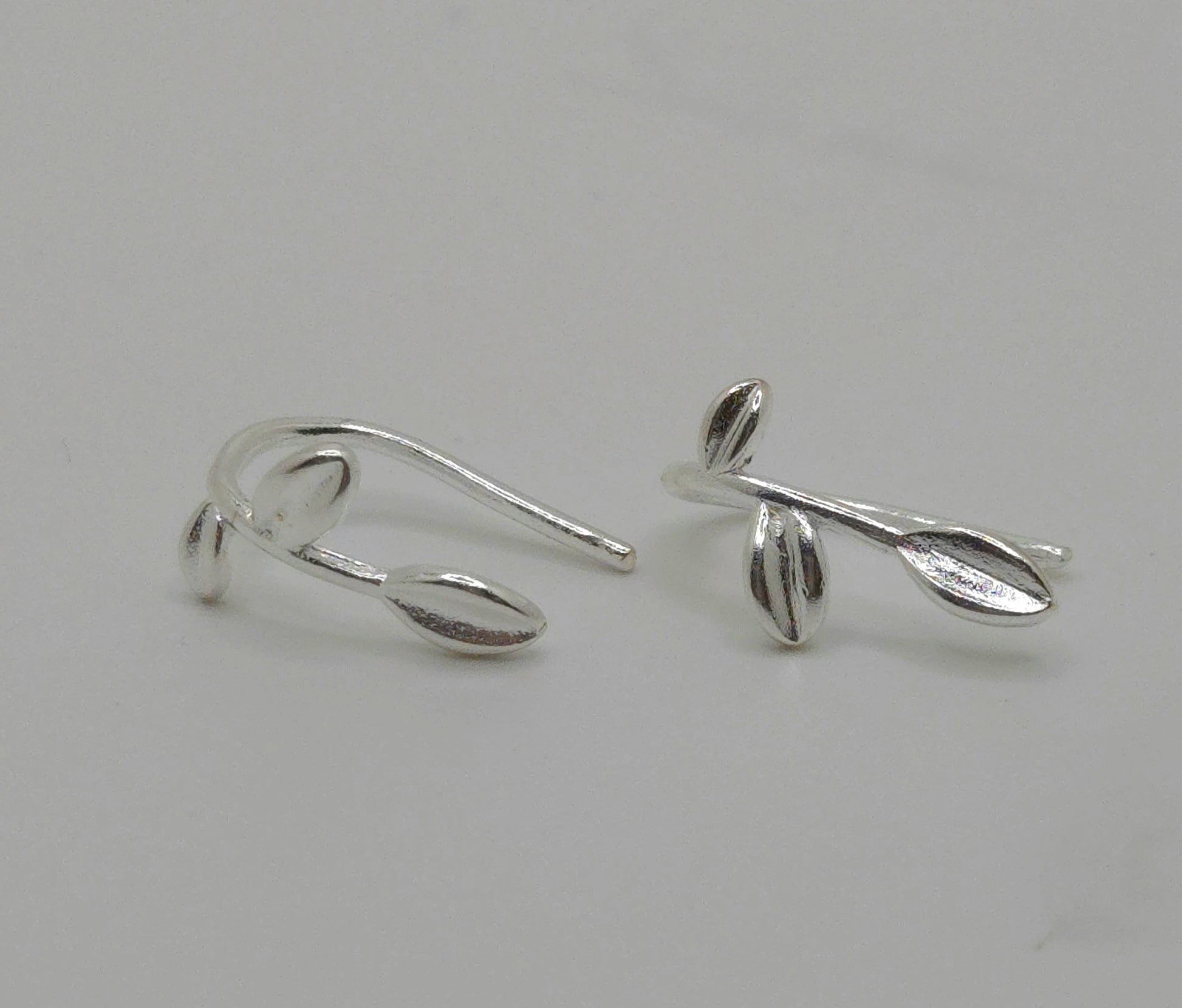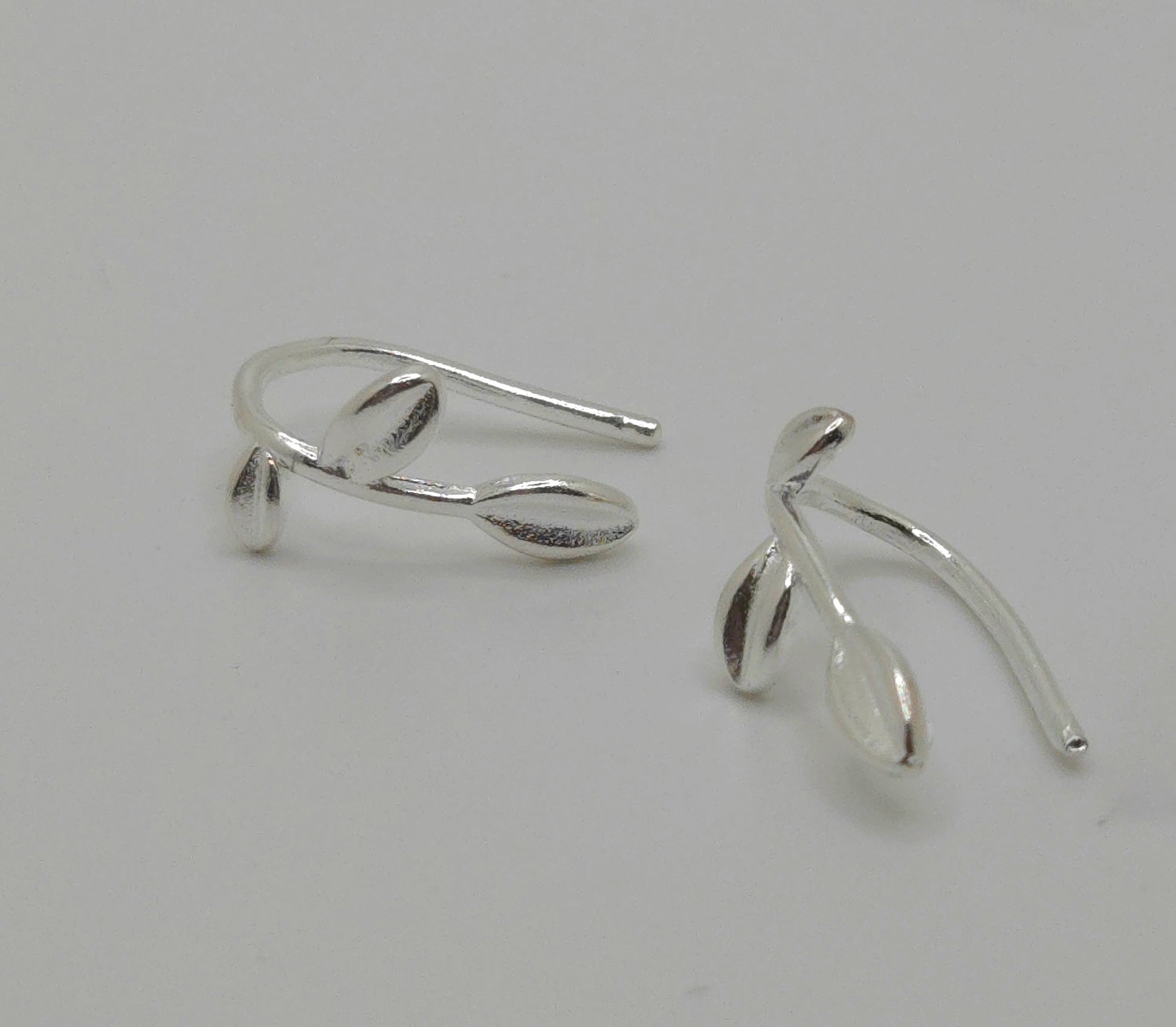 99.9% pure sterling silver lightweight sprout leaf hook earrings.