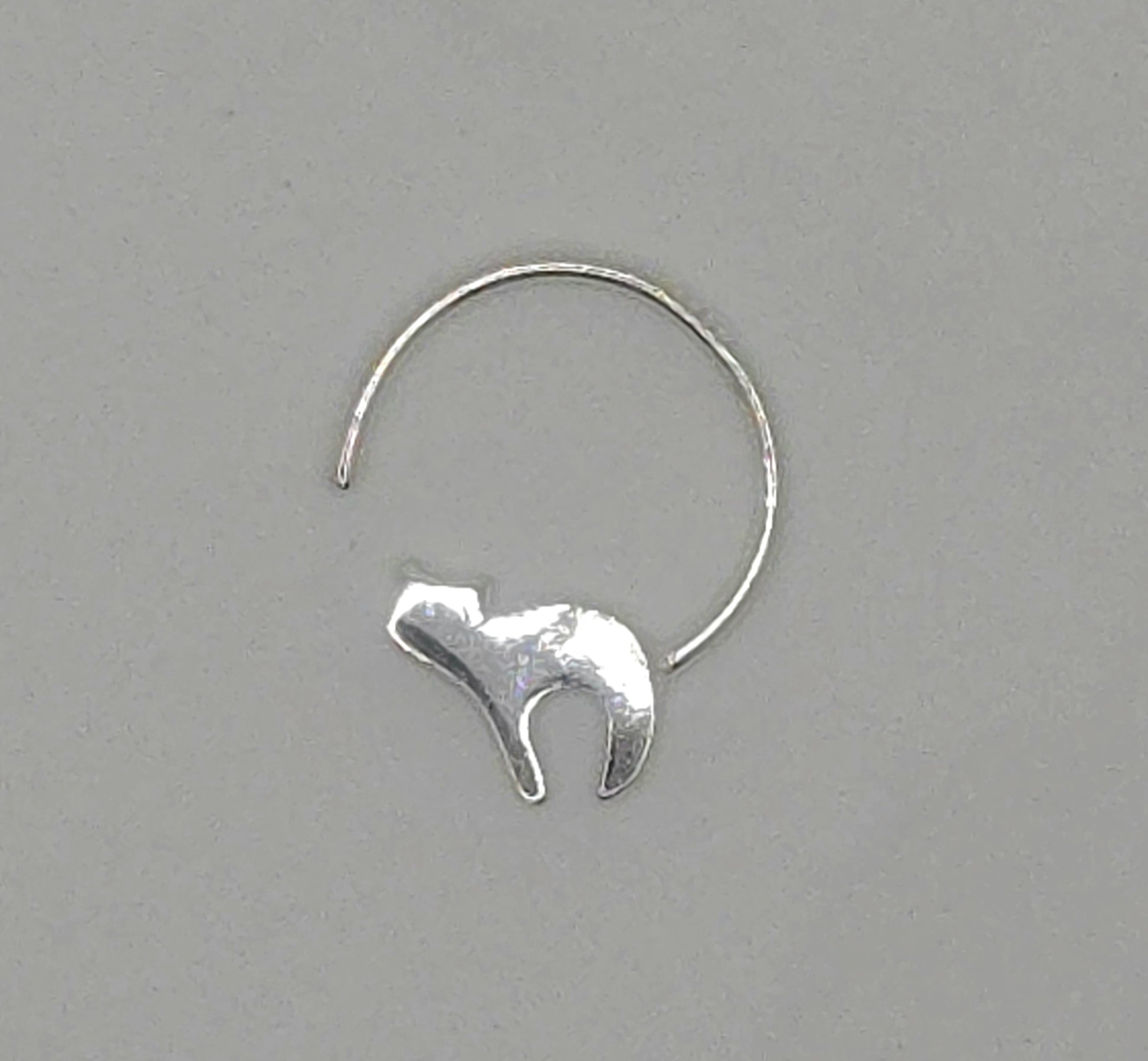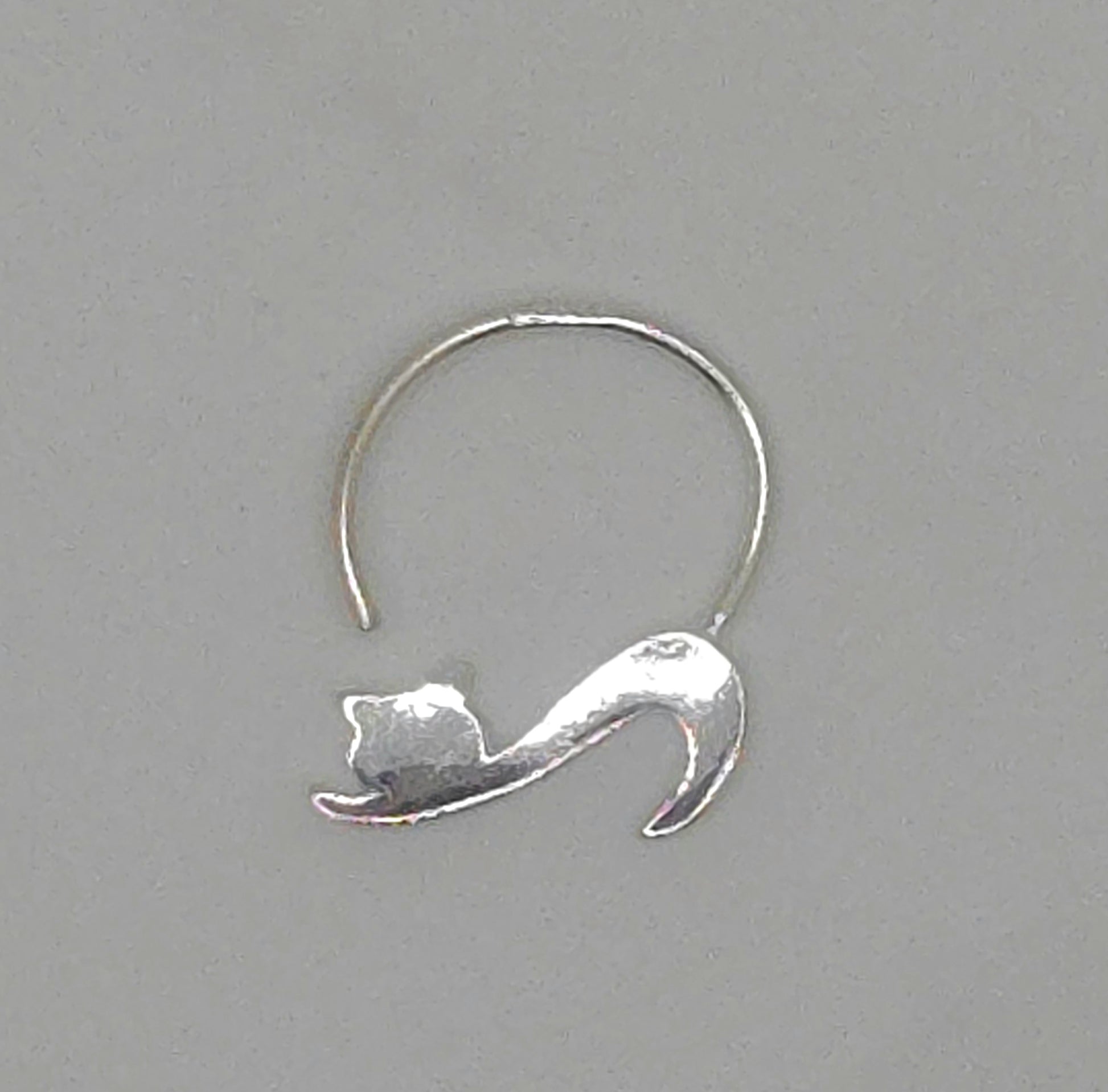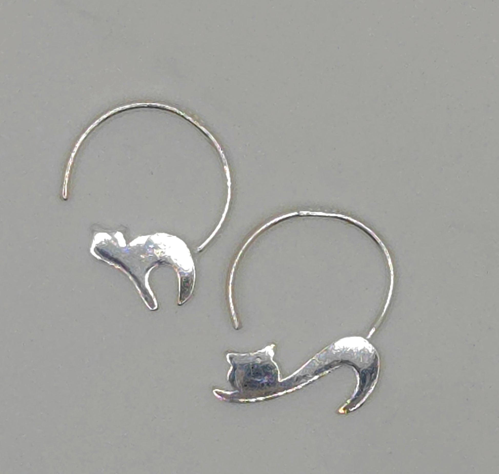 99.9% pure sterling silver asymmetrical stretching kitten hooks earrings.