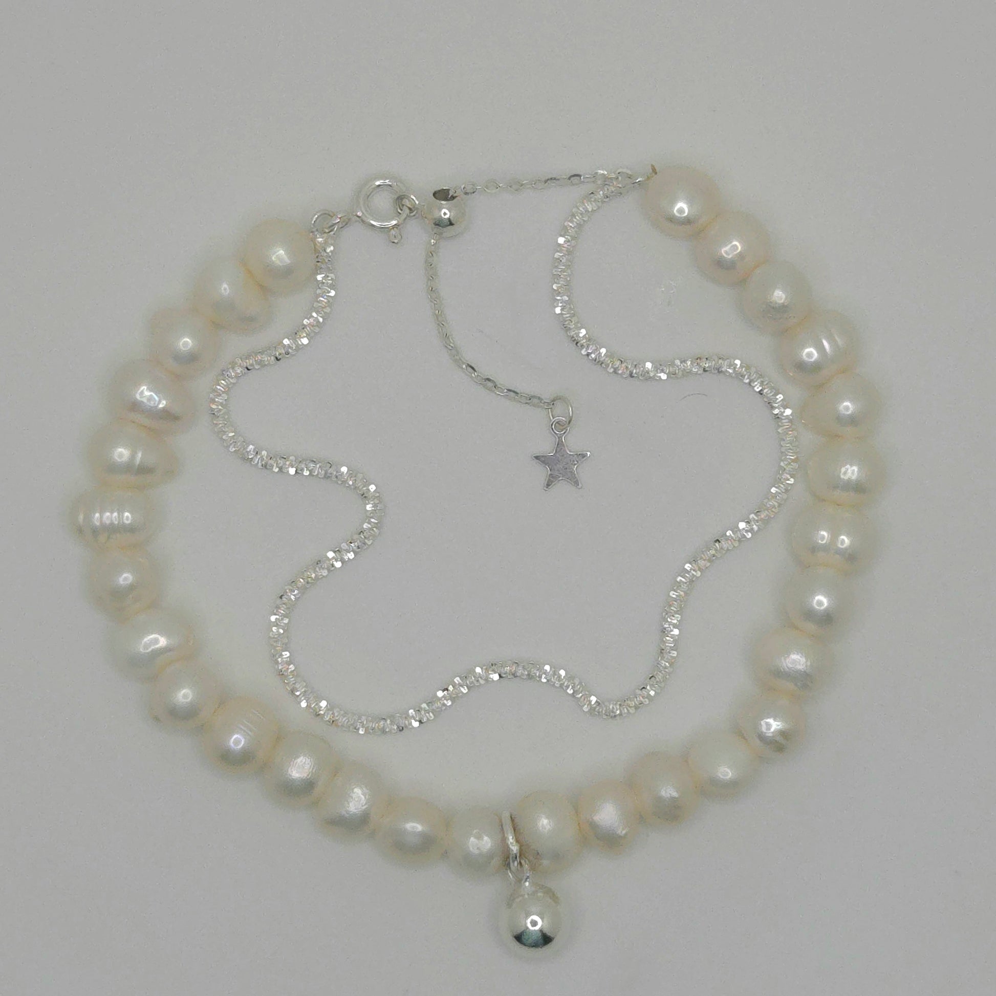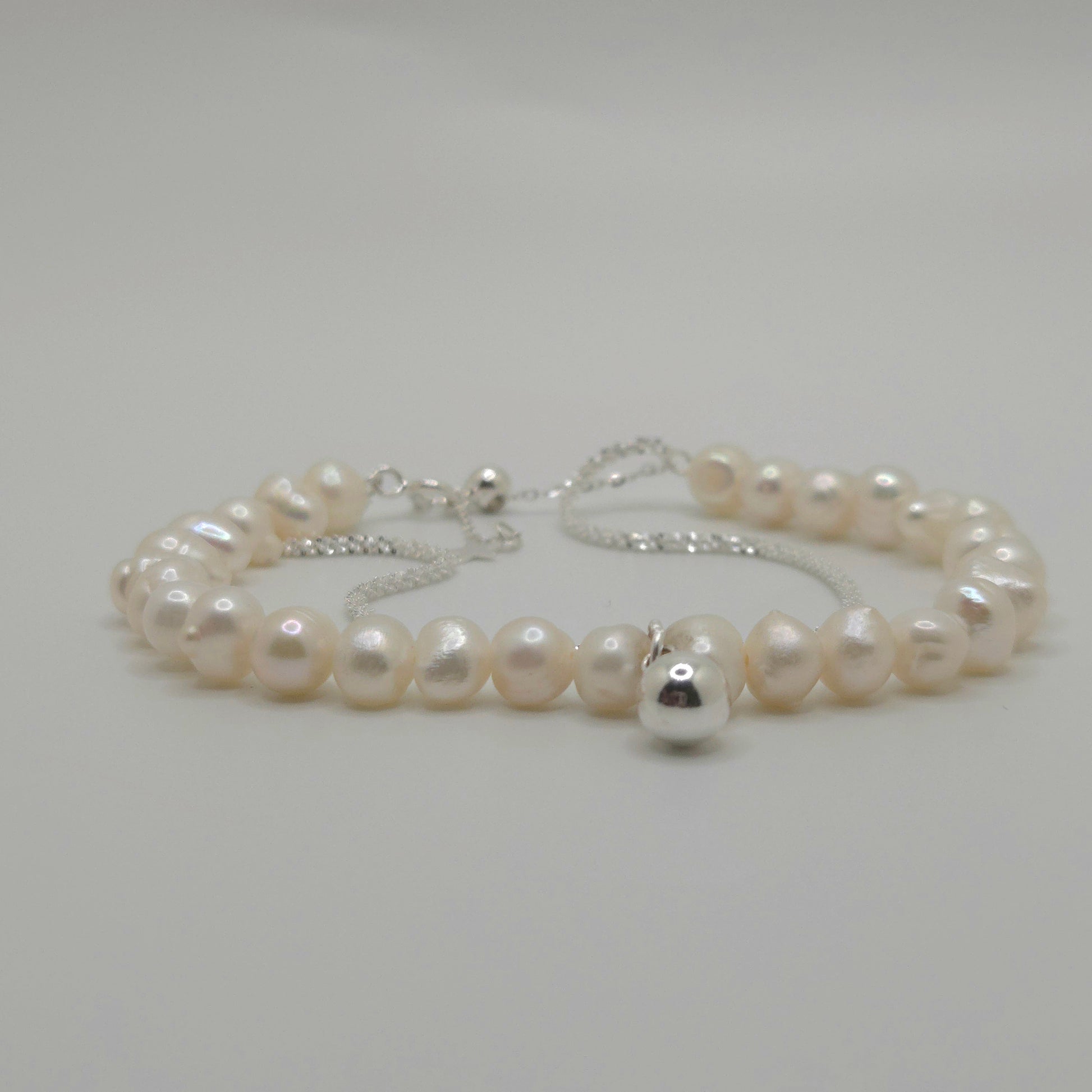 92.5% sparkling sterling silver and authentic pearl double layered bracelet.