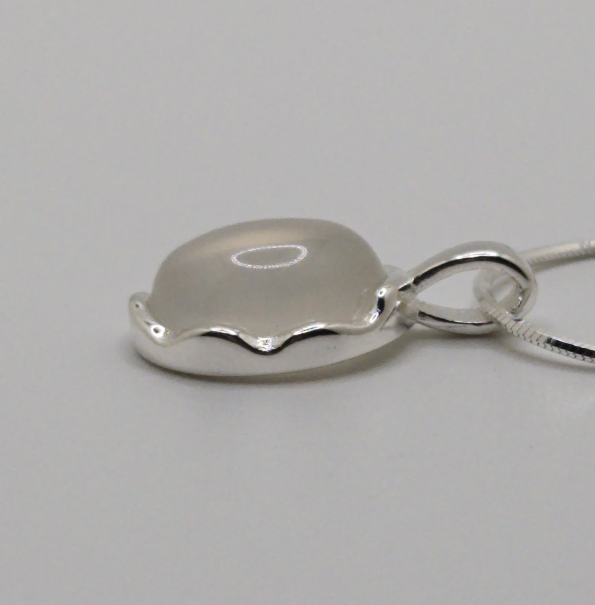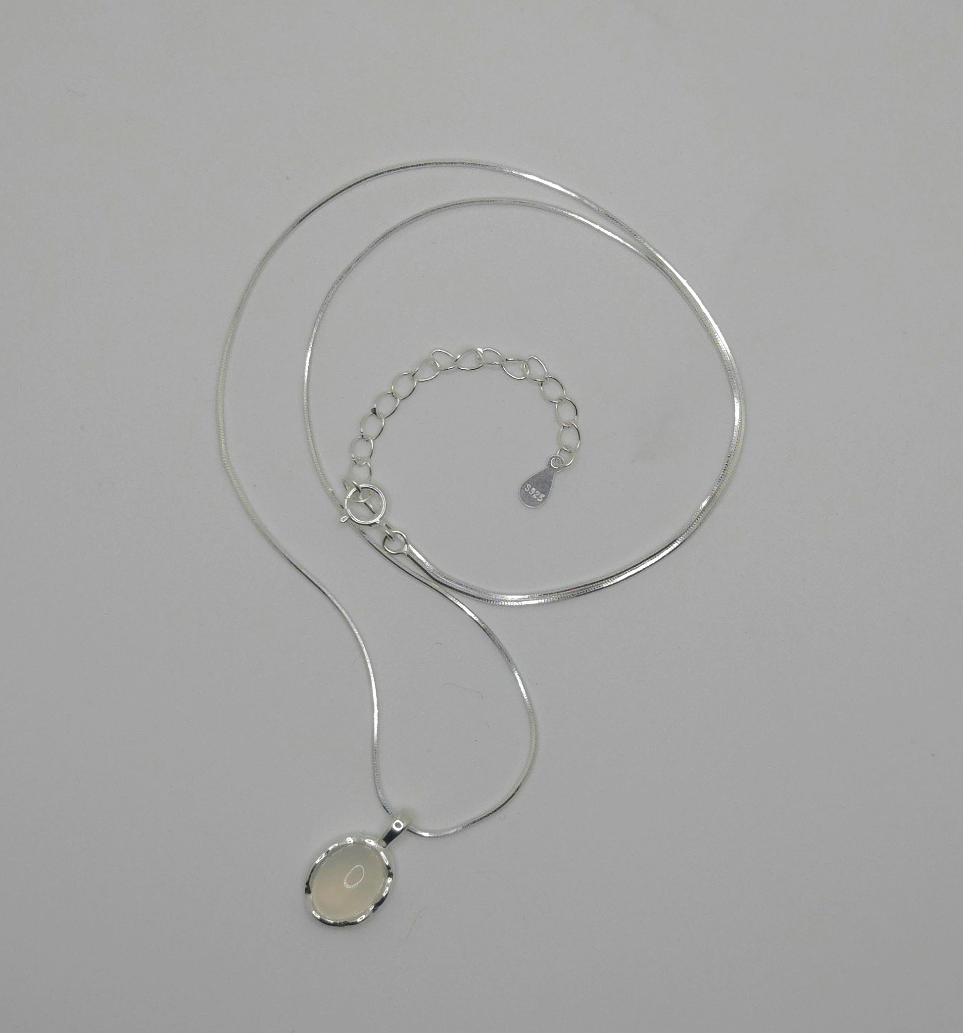 92.5% sterling silver snakebone necklace with white agate stone pendant.